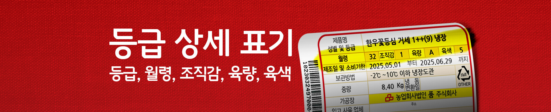 근내지방: 6 육량: B 육색: 5 월령: 30 조직감: 2